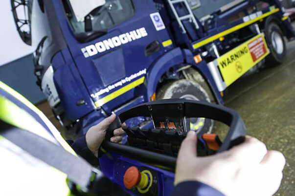 The remote control technology operates the skip loading equipment via a wireless mechanism that allows the driver to position themselves where they have all-round vision of the operation rather than just one view from the side of the vehicle, providing greater safety for the driver and others in the vicinity.